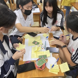 便條拼貼成大綱,提筆繪圖組紙卡。