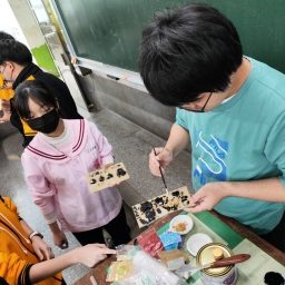 拿出熟悉的腰果漆,林政融老師貼心叮嚀同學小心作業,避免沾到衣物。