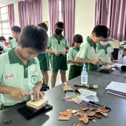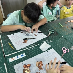 將老師事先準備好的銅片設計出自己喜歡的蝴蝶樣式