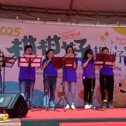 接著由童文政老師帶領陶笛班演出,悠揚動人的陶笛樂聲在田心公園緩緩流淌,讓現場民眾陶醉於音樂帶來的溫暖與感動。