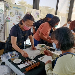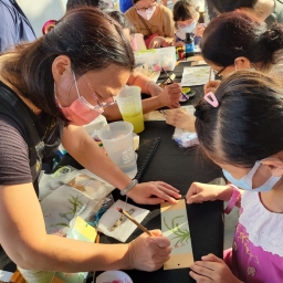 水墨畫是運用一種不著彩色,純以水墨點染的繪畫方法,老師用水墨的優美來點綴活動,帶領大家體驗不同美感手作饗宴