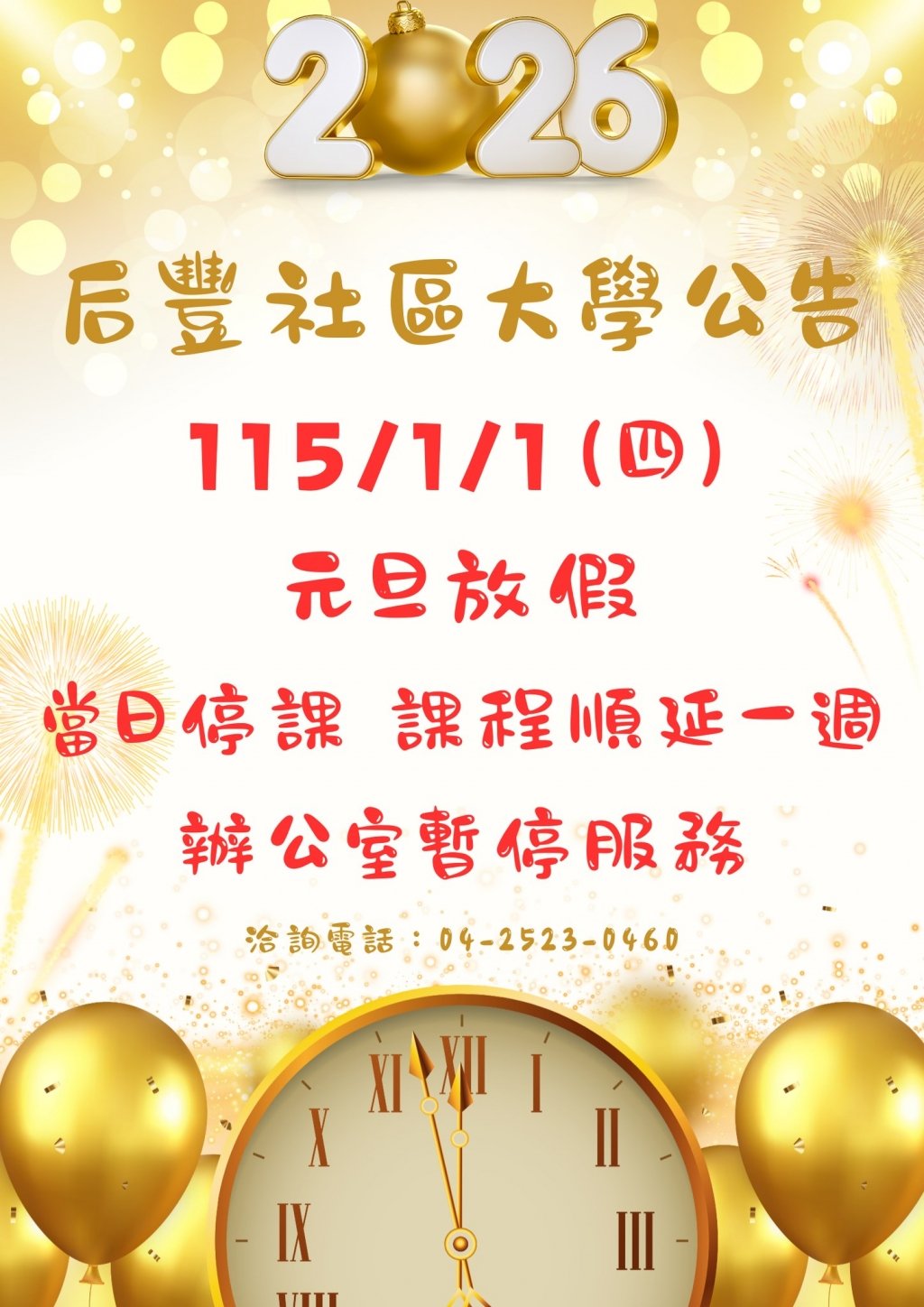 元旦放假!!!新年快樂!!!