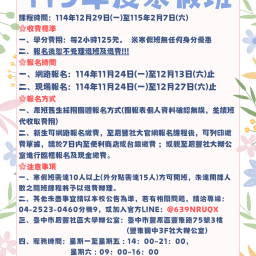 2025/11/17 NEW115寒假班課程簡章出爐~ 熱愛學習的您趕緊來報名!