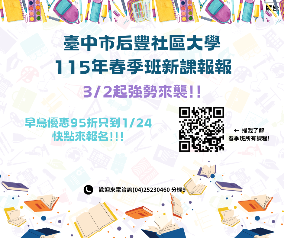 【臺中市后豐社區大學】115年春季班課程自1/5起開始報名囉