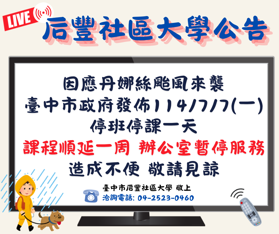 2025/7/67/7(一)停班停課 課程順延一週