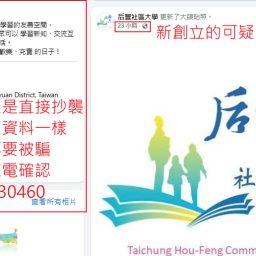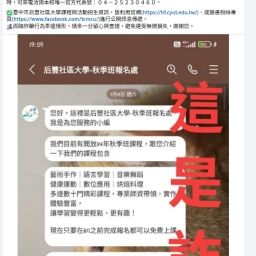 如果無法判斷,請致電04-25230460直接與后豐社大辦公室確認,或透過數發部的網站進行查證或通報。
